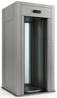 Utrustad med två rörliga hinder, fri passagebredd 580 mm och yttermått 1050 × 1050 mm.